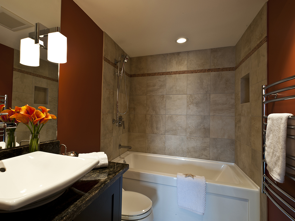 This new bathroom design created more space and efficiency for our client. We added a large, custom walk-in shower, instead of a tub, and ensured ample storage for two. Tile and colour choices were inspired by our client’s frequent trips to Italy and heated floors and towel warmers brought additional comfort to the room. The LED, under-vanity, mood lighting makes midnight trips to the bathroom easy. The lights have a longevity of over two years with continuous use which make them both cost effective and environmentally friendly!